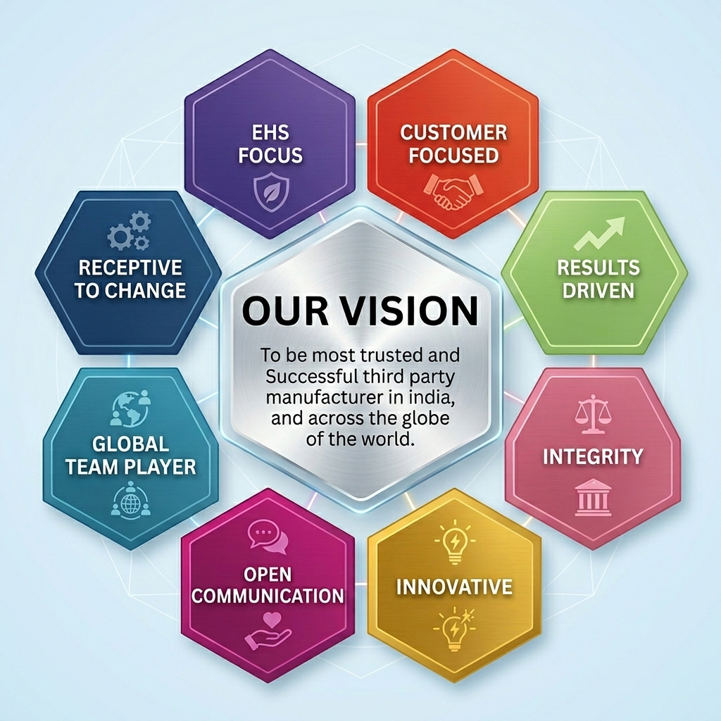 D.R. John’s Lab Vision is to become the best trustworthy third-party pharmaceutical manufacturer in India. We want to be known across the world for quality, compliance, and innovation in pharmaceutical & nutraceutical manufacturing. We desire to be the top contract pharma manufacturer by offering a complete solution from formulation development to packaging and regulatory support.